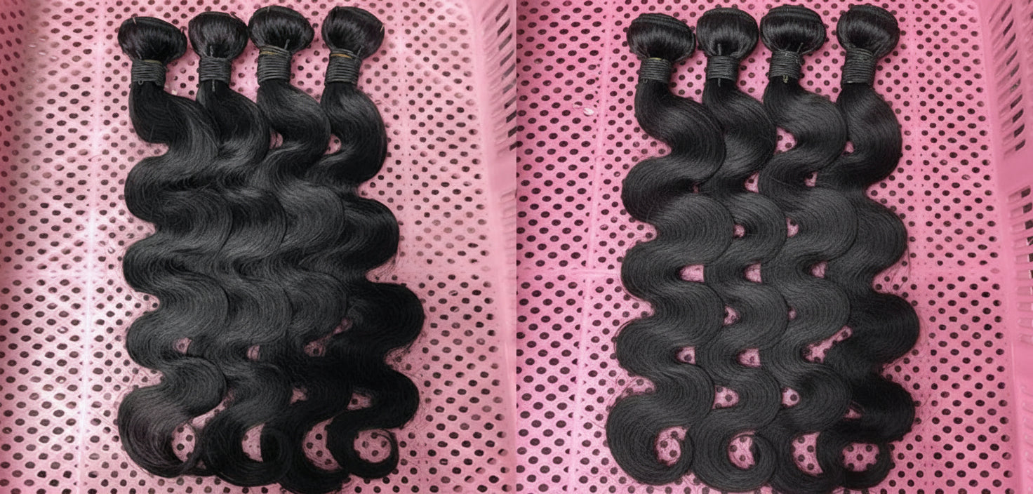 Experience luxurious volume and natural movement with these 24-inch Body Wave Human Hair Bundles. Crafted from 100% Brazilian raw human hair, these 10A-grade bundles offer exceptional thickness and durability. Ideal for versatile styling, they blend seamlessly for a flawless, full look. Available in sets of 1, 3, or 4 bundles to suit your styling needs. Elevate your hair with rich texture and long-lasting quality tailored for women who demand expert-level beauty.