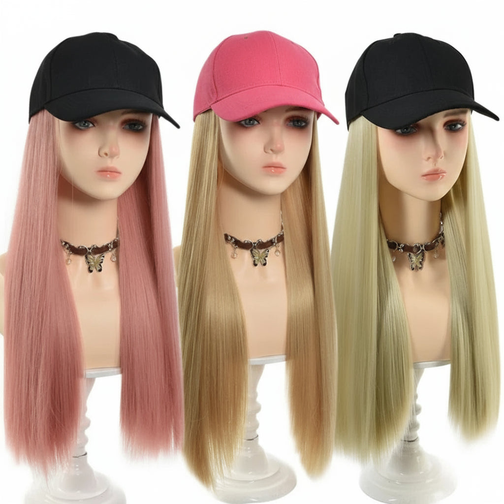 Transform your look instantly with this synthetic hair extension cap. Featuring premium blonde straight hair seamlessly integrated into a wearable hat design, this piece offers effortless styling without commitment. The synthetic fibers maintain their shape and color through regular wear, requiring minimal maintenance compared to natural hair extensions. Perfect for adding volume, length, or experimenting with a new aesthetic. Ideal for those seeking a quick, reversible hair transformation that delivers salon-quality results at home.