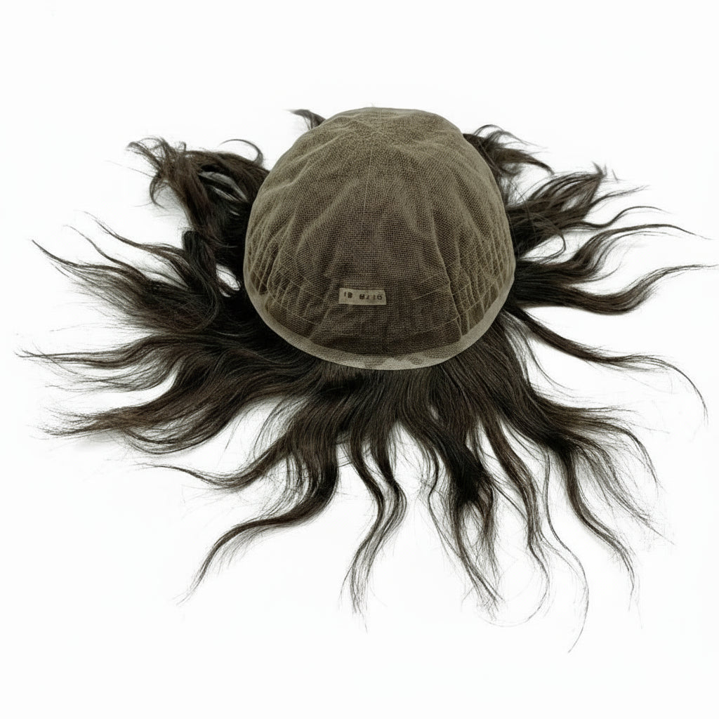 This premium men's lace wig features a full Swiss lace construction with meticulously bleached knots for an undetectable hairline. The delicate lace base allows for natural-looking hair density and seamless blending with your skin tone. Designed for comfort and longevity, the bleached knots minimize visibility while maintaining the wig's structural integrity. Ideal for those seeking a realistic, professional appearance with the confidence of quality craftsmanship.